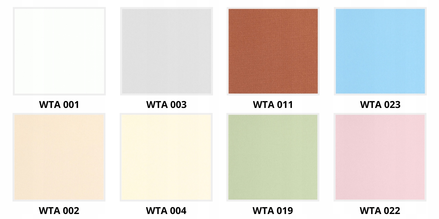 WTA -> це основні матеріали вертикальних жалюзі. Їх світлопропускання становить близько 50-60% для світлих кольорів і близько 17% для темних кольорів.