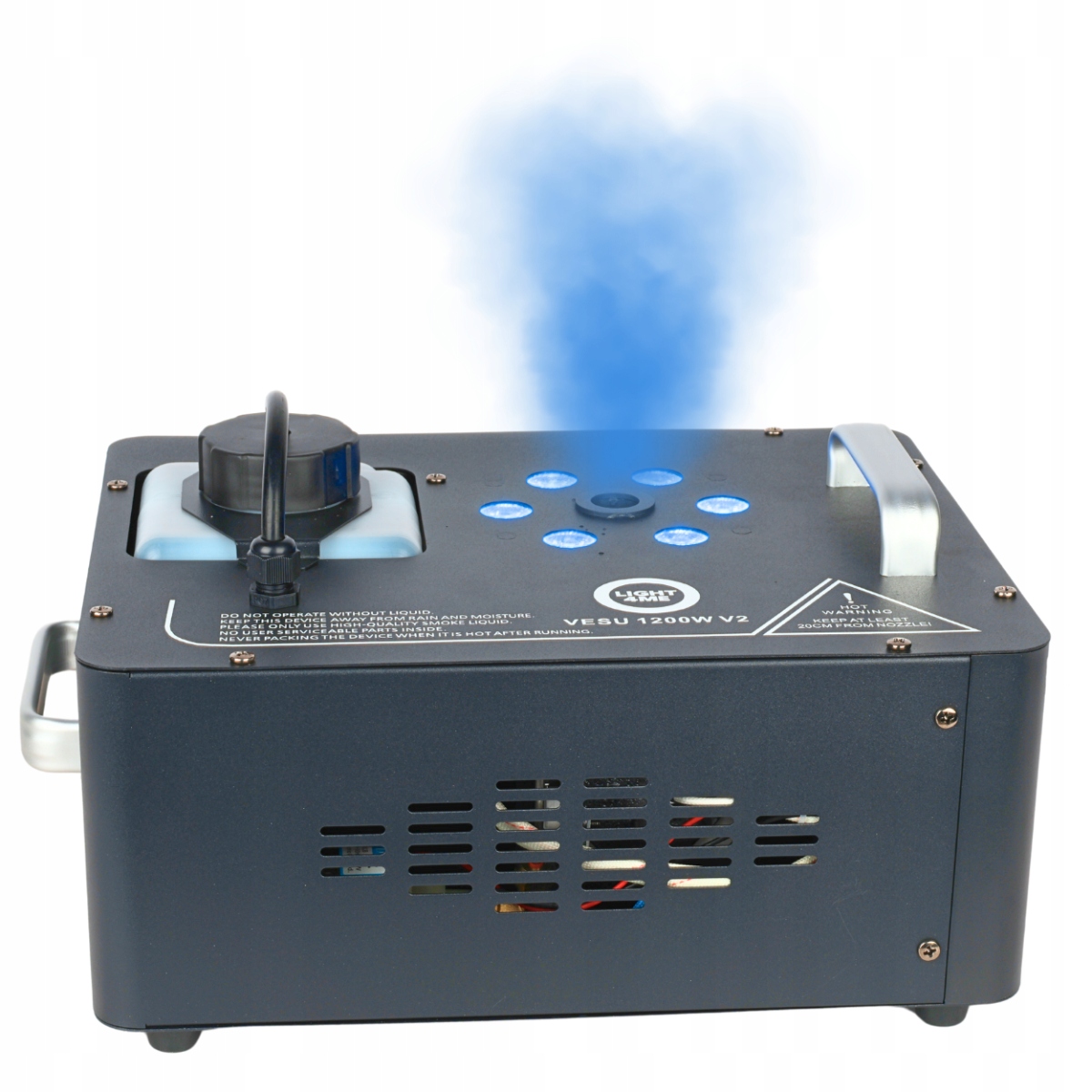 Вплив вертикального викиду диму з інтенсивною підсвічуванням RGB - це перевірений спосіб насолодити гостей та учасників кожної події. розслаблення триває до 20 секунд , а ємність понад 420 м³/хв гарантує негайну дію. Це ідеальне доповнення до світла та музичної обстановки на концертах, шоу, галасах, весіллях чи тематичних подіях. З light4me vesu 1200w v2 ви не тільки підвищуєте якість візуальної обстановки, але й будуєте атмосферу, яка запам'ятається.