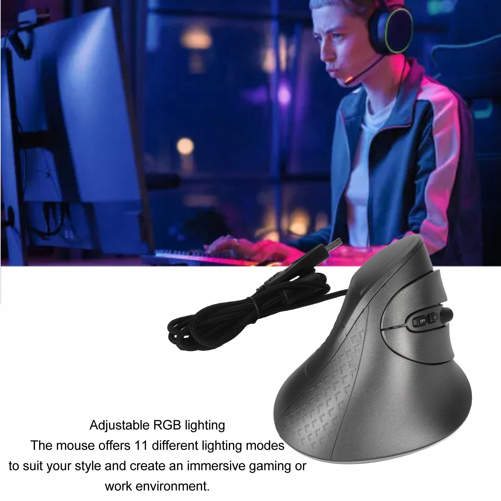 . Вертикальна миша 7 Програмовані кнопки RGB 11