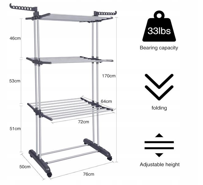 Невинна сушарка для одягу всередину і поза 0-172 см х 73-126 см