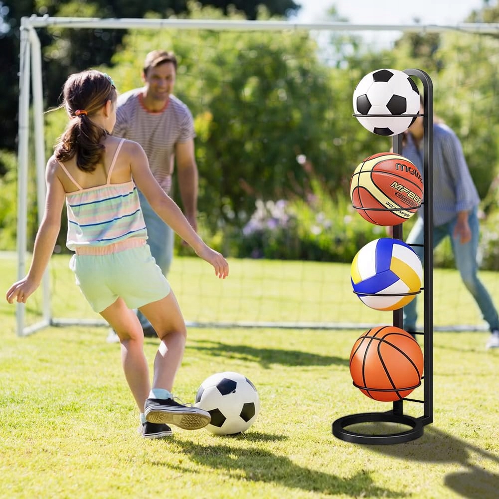 Збільште простір для зберігання за допомогою нашої стійки для м’ячів. Легко зберігає баскетбольні, волейбольні та футбольні м’ячі відповідно до різноманітних потреб зберігання. Ідеально підходить для гаражів, дитячих кімнат, спалень, віталень, спортивних споруд, будинків, спортивних залів і шкіл скрізь.