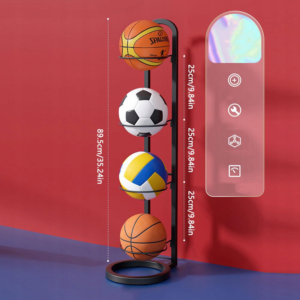 Наша стійка для м’ячів не лише пропонує практичне рішення для зберігання, але й виглядає привабливо. Це ідеальна прикраса, яка додасть будь-якому приміщенню гарний і впорядкований вигляд. На ньому можна відобразити футбольний, баскетбольний м'яч, м'яч для регбі або волейбольний м'яч. Це ідеальний подарунок для хлопчиків, спортсменів і любителів баскетболу.
