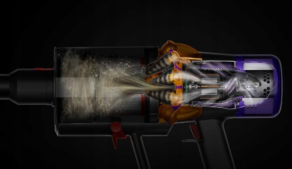 запатентована Dyson Technology 14 Cyclones захоплює та відокремлює пил та забруднення, завдяки якому немає втрати відсмоктування. Він підраховує молекули до 15 000 разів в секунду, регулюючи силу всмоктування для оптимізації робочого часу. 4