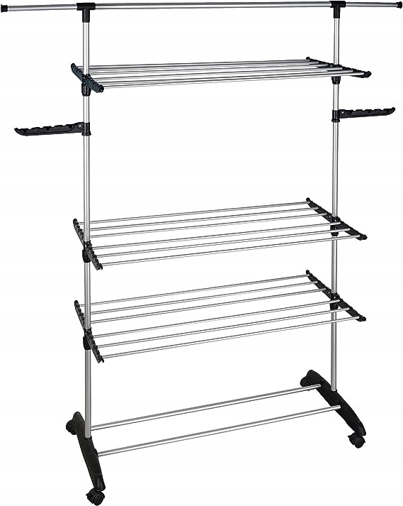 - Багатофункціональна сушарка для білизни з високою потужністю, повністю модульована, практична завдяки інтегрованій вішалці для одягу. Ви можете повісити до 25 м мити на 3 рівні. Ідеальне рішення для великих сімей. Оснащений 2 вішалками для одягу, розгиначою паличкою для висячих аркушів та іншого об'ємного одягу, подвійний стрижень для зберігання взуття та 4 валиків для легкого транспорту та більшої стабільності.