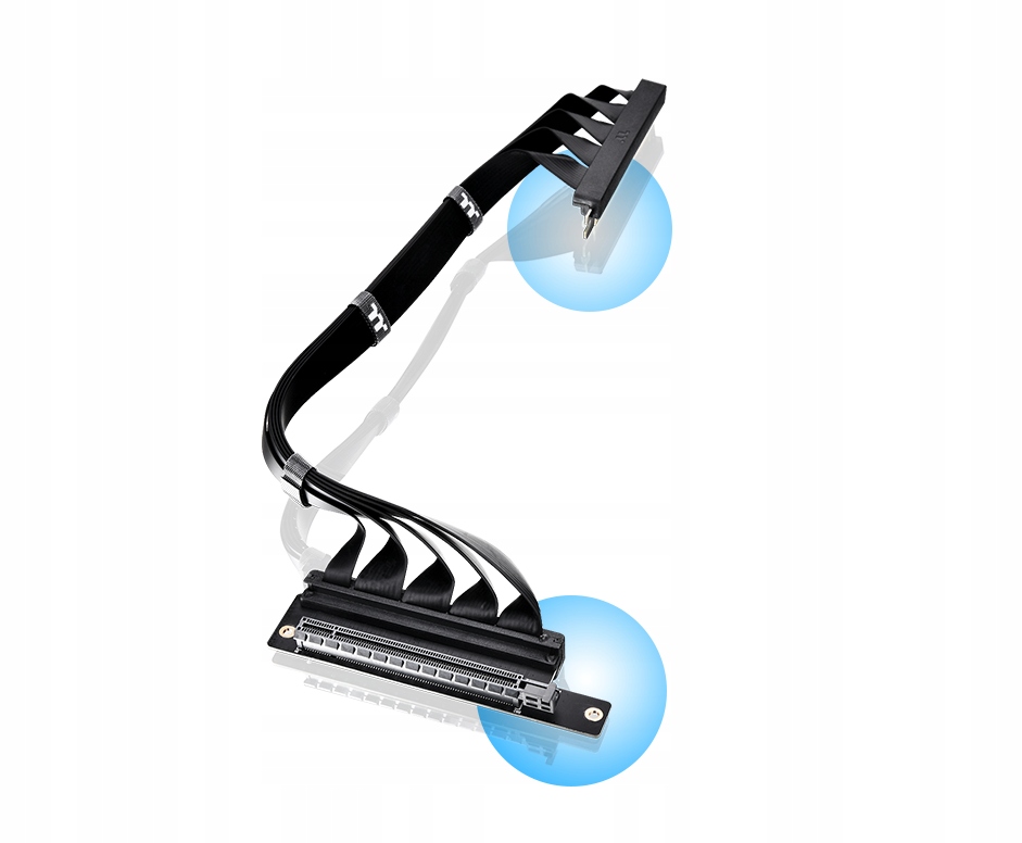 Кабель використовує подвійну конструкцію під кутом 90 градусів, який з'єднує материнську плату з відеокартом, що дозволяє прокладатися плоскою кабелю, що зменшує кількість необхідного місця.