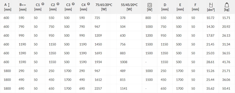 Радіатор також доступний в інших розмірах на інших наших аукціонах - креслення та таблиця з технічними даними нижче