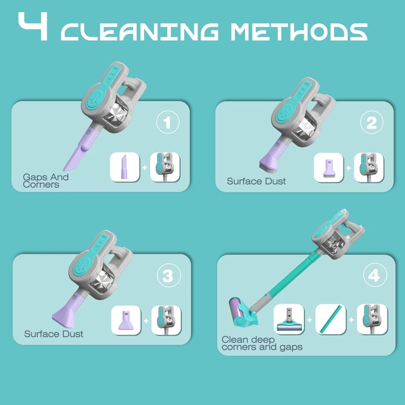 Вертикальний пилосос для дітей малює побутові прилади на батареї побутових. функція всмоктування і звук зробить прибирання ще більш реалістичним та привабливим. Видалений контейнер для штучного сміття може бути легко спорожнена. Вакуумний очищувач має 4 пензлики , завдяки яким дитина може вирішити, що він захоче прибирати. Іграшка була виготовлена з високої якості безпечних матеріалів для дітей . Вакуумний очищувач має зручну ручку , завдяки якому дитина може перемістити пилосос з місця на місце. Ідеально в подарунок, щоб допомогти дитині наслідувати свого батька , бо яка дитина не хотіла б бути дорослим?