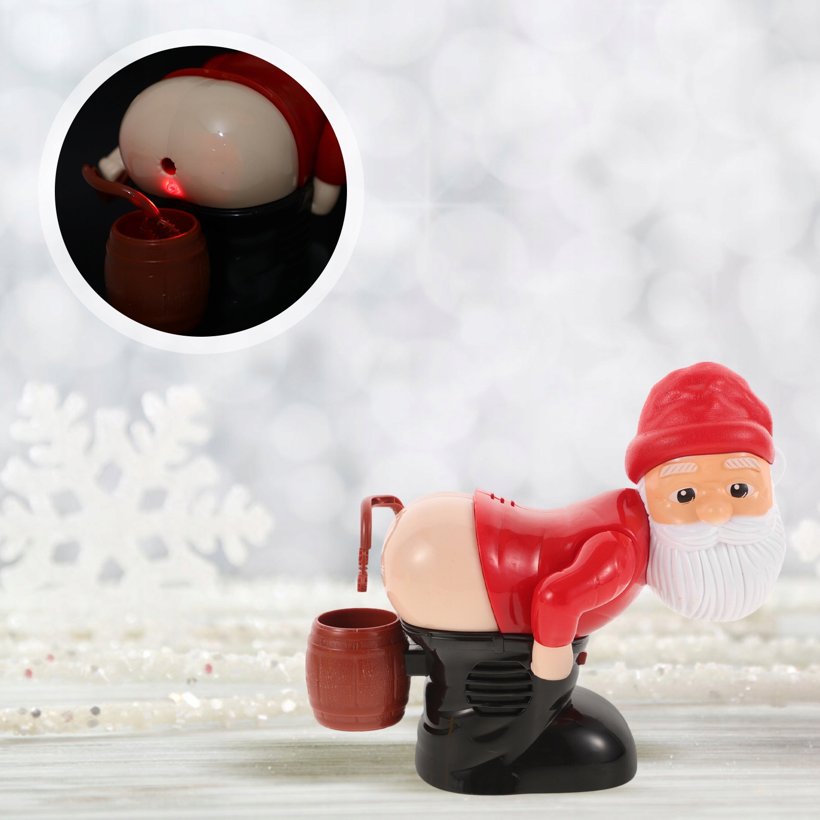 Ця грайлива машина для миття бульбашок Санта-Клауса ідеально підійде для будь-якої святкової вечірки! Просто наповніть його розчином для бульбашок, натисніть перемикач, і Санта видаватиме веселі звуки пукання, видуваючи бульбашки всюди. Незалежно від того, чи це сімейна зустріч, різдвяна вечірка чи подія на відкритому повітрі, ця креативна іграшка обов’язково розсмішить усіх!