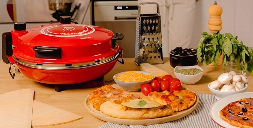 ⭐ весела піца та Co мама - це пристрій, створений для любителів італійської кухні . Завдяки керамічним нагрівальним пластинам та температурі до 420 ° C за кілька хвилин ви отримаєте піцу з хрусткою шкірою та м'яким інтер’єром , що нагадує хлібобулочні вироби з традиційних печей, що вибивають деревину. Ідеальний вибір для сімейних обідів та зустрічей з друзями .