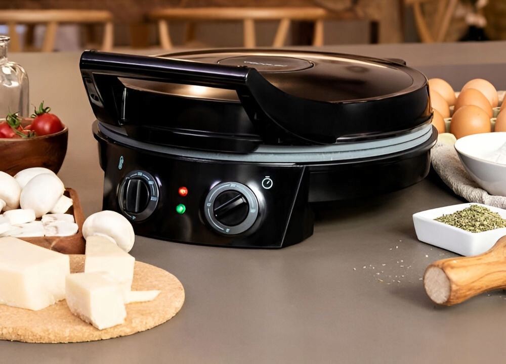 ⭐ весела виробник піци та співпраці -це пристрій, який порадує домашніх любителів випічки . Окрім піци ви підготуєте в ній тости, млинці та паніні . Завдяки відкриття під кутом 180 ° він може виконувати функцію тостер , що робить його незамінним у повсякденній кулінарії. Два режими випічки дозволяють адаптувати роботу пристрою до різних кулінарних потреб .