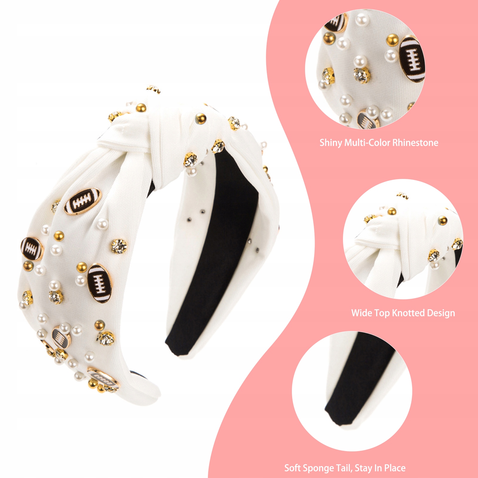 Весела пов'язка для гри в американський футбол із перламутровими стразами, прикрашена зав'язаним SA