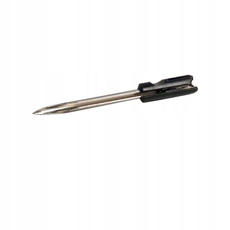 Голка в пристрої пронизує матеріал і кріпить рибальську лінію, на якій розташована етикетка з картону