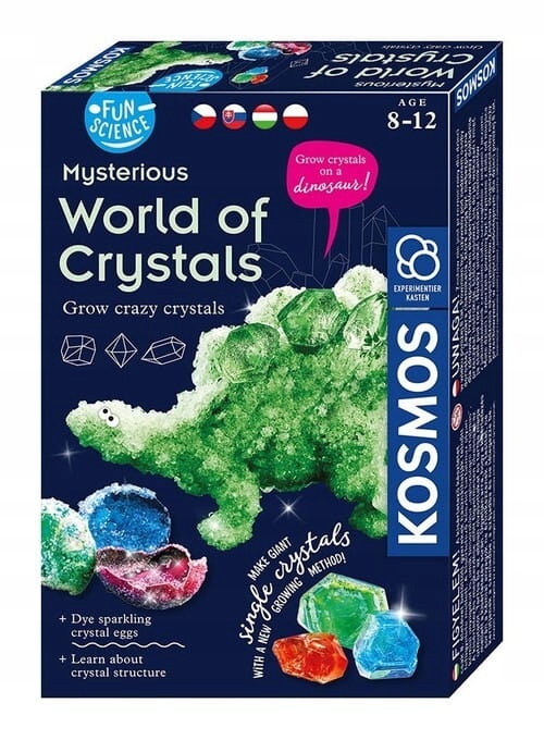 Вирощуйте великі кристали за допомогою нового, інноваційного методу. Вирощуючи монокристали та проводячи інші експерименти, ви створите справжній світ кристалів. Є багато можливостей - ми можемо виростити великі блакитні монокристали, гірлянди крапель, красиву прикрасу для печери динозаврів або навіть блискучі яйця динозаврів. Спостереження за процесом формування кристалів - це не тільки наука, але й велика розвага, повна захоплюючих вражень. У набір входить: - кристалічна печера - фігурка динозавра - 4 пакетики калій алюміній сульфату - 1 пакет калій алюміній сульфату - бірюзовий порошковий барвник - синій, червоний, зелений магічний папір - бавовняна нитка - чашка, пінцет, шпатель. Для дітей віком від 8 років