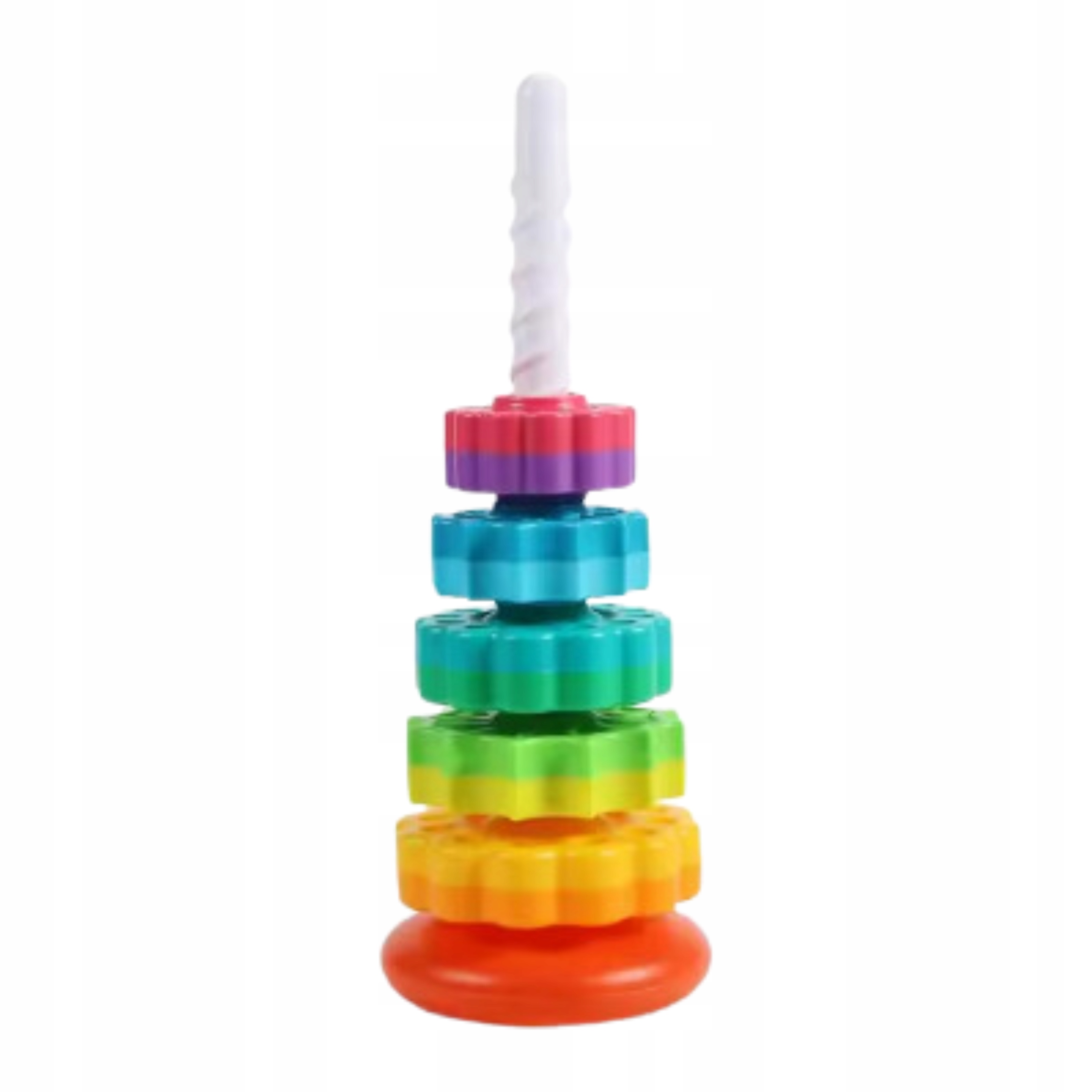 Відкрийте для себе радість і розвиток вашої дитини з цією веселковою вежею! Іграшка складається з різнокольорових кілець різної форми, які можна розмістити на спіралі. Кожне кільце має різний колір, що допомагає навчитися розрізняти кольори та розвиває ручні навички та координацію рухів.