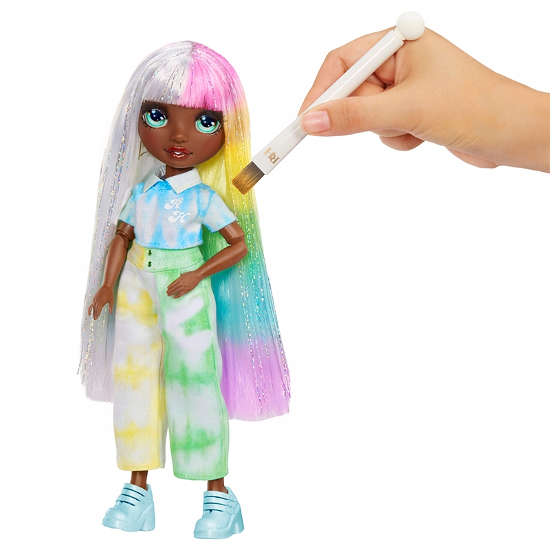 Процес фарбування надзвичайно простий і смішний: занурювати одяг або волосся ляльок у фарбу, а потім, коли ви хочете змінити візерунок, просто промийте все мильною та мильною водою і знову почніть веселитися. Крім того, додаткові аксесуари, такі як гумка для створення різноманітних конструкцій барвників, а також шаблони, які допоможуть викликати фантазійні форми як на волоссі, так і на одязі.