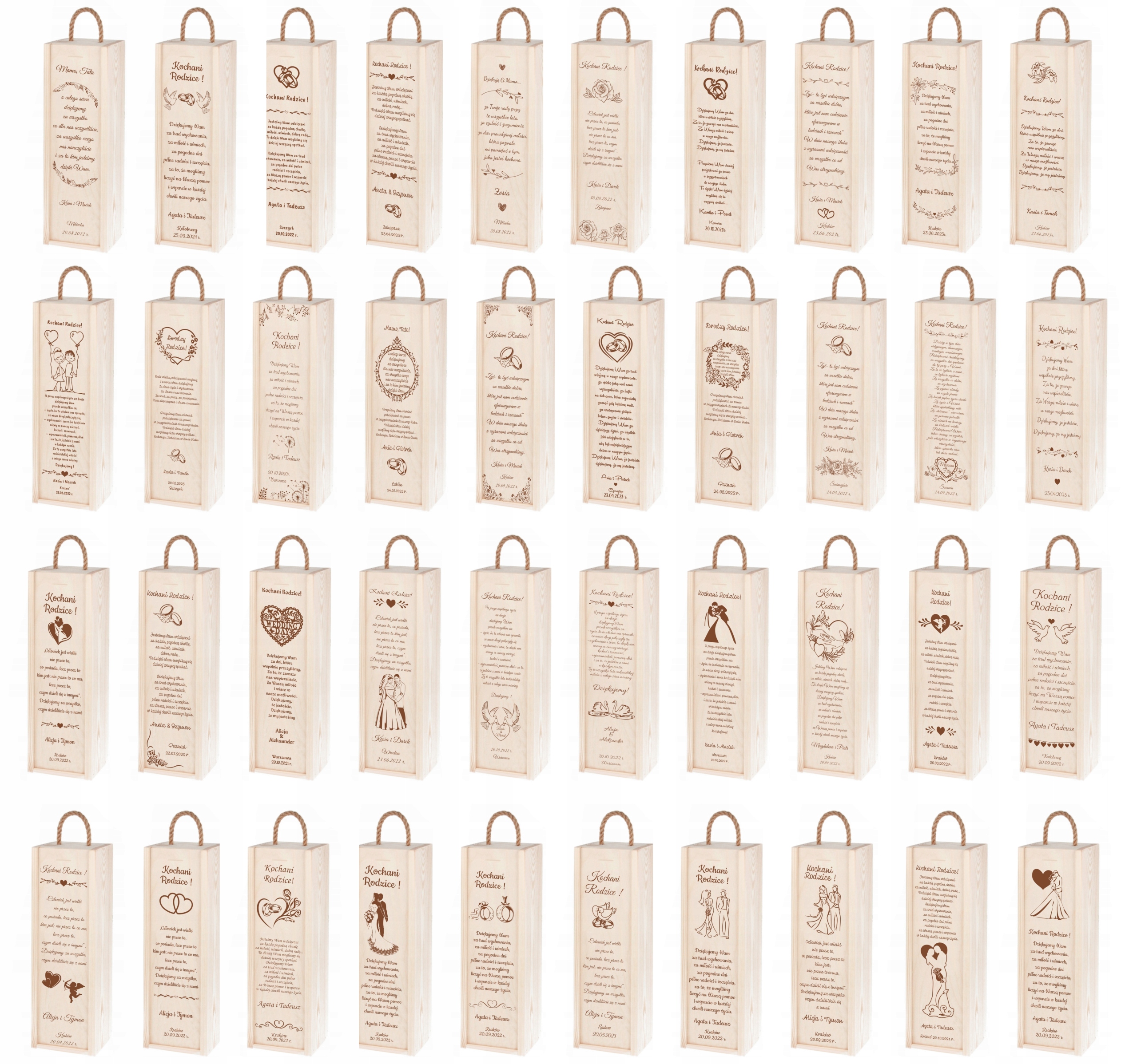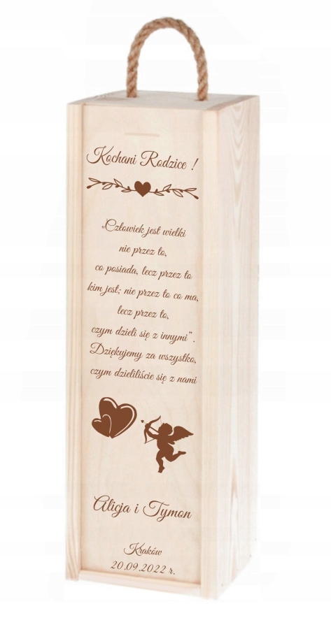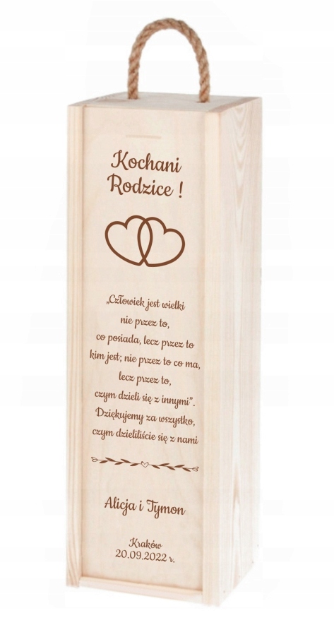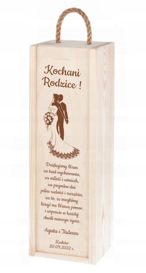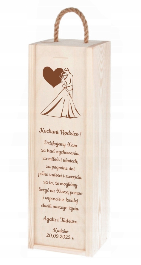 Просматривая «Свадьба для винной коробки благодаря родителям», вы можете быть уверены, что данный товар из каталога «Ящики для алкоголя» будет доставлен из Польши и проверен на целостность. В цене товара, указанной на сайте, учтена доставка из Польши. Внимание!!! Товары для Евросоюза, согласно законодательству стран Евросоюза, могут отличаться упаковкой или наполнением.