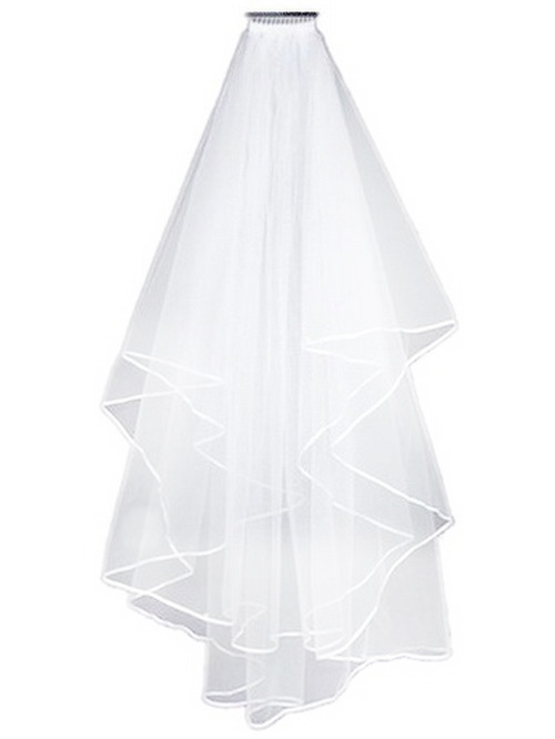 Весільна фата біла, подвійна 60/80, обробка тюль