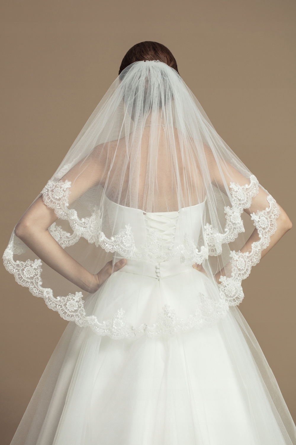 Весільна фата, прикрашена шифруючою стрічкою W-903 Ivory
