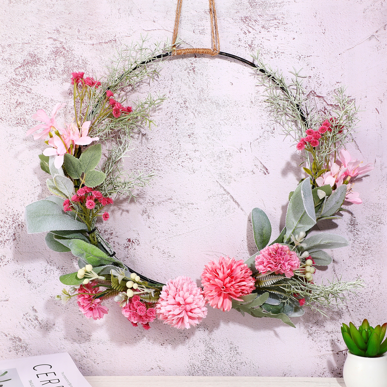 ✅ Ніжний вінок: круглий вінок, прикрашений реалістичними штучними квітами та листям, є ніжною та красивою прикрасою.