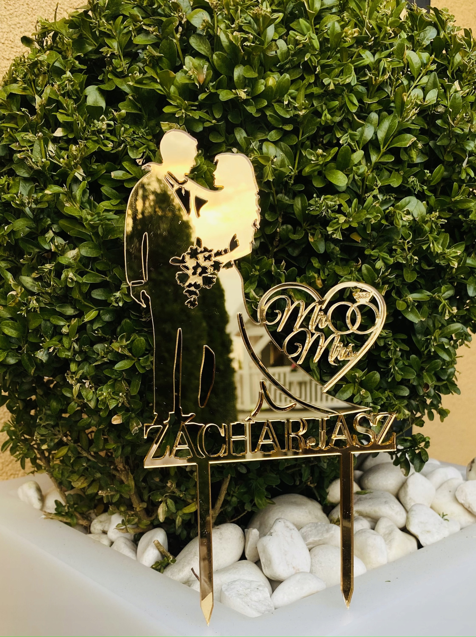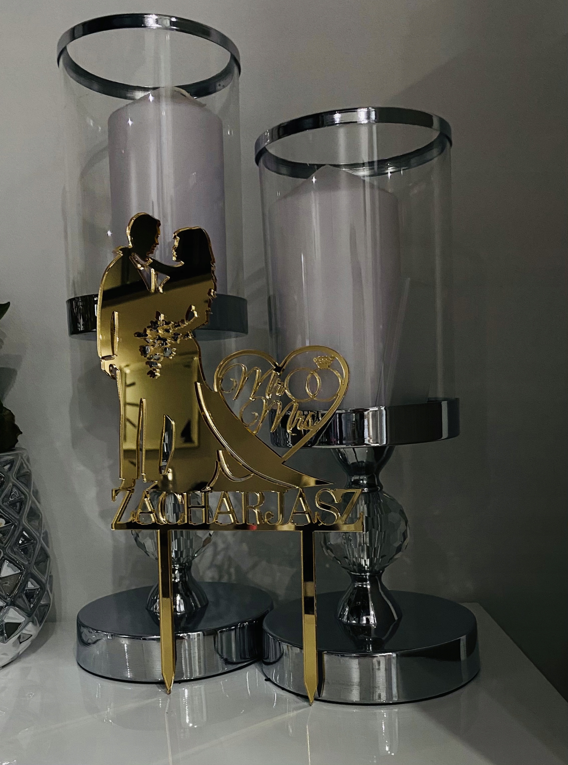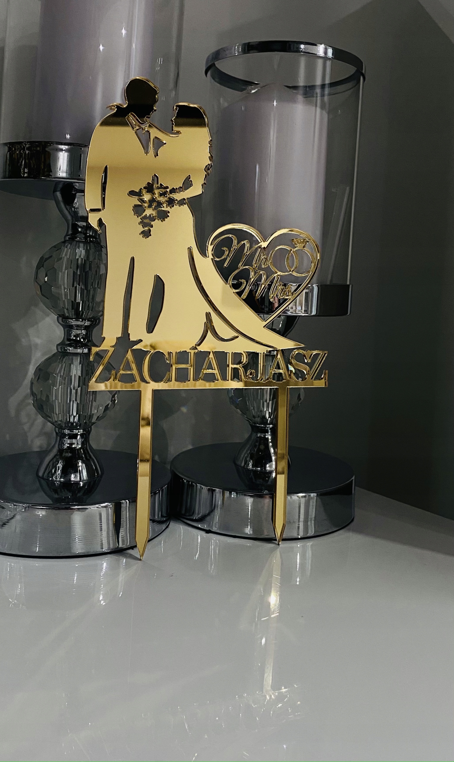 ВЕСІЛЬНА ПАРА ТОПЕР ДЛЯ ТОРТА ЗОЛОТО ДЗЕРКАЛО ІМ