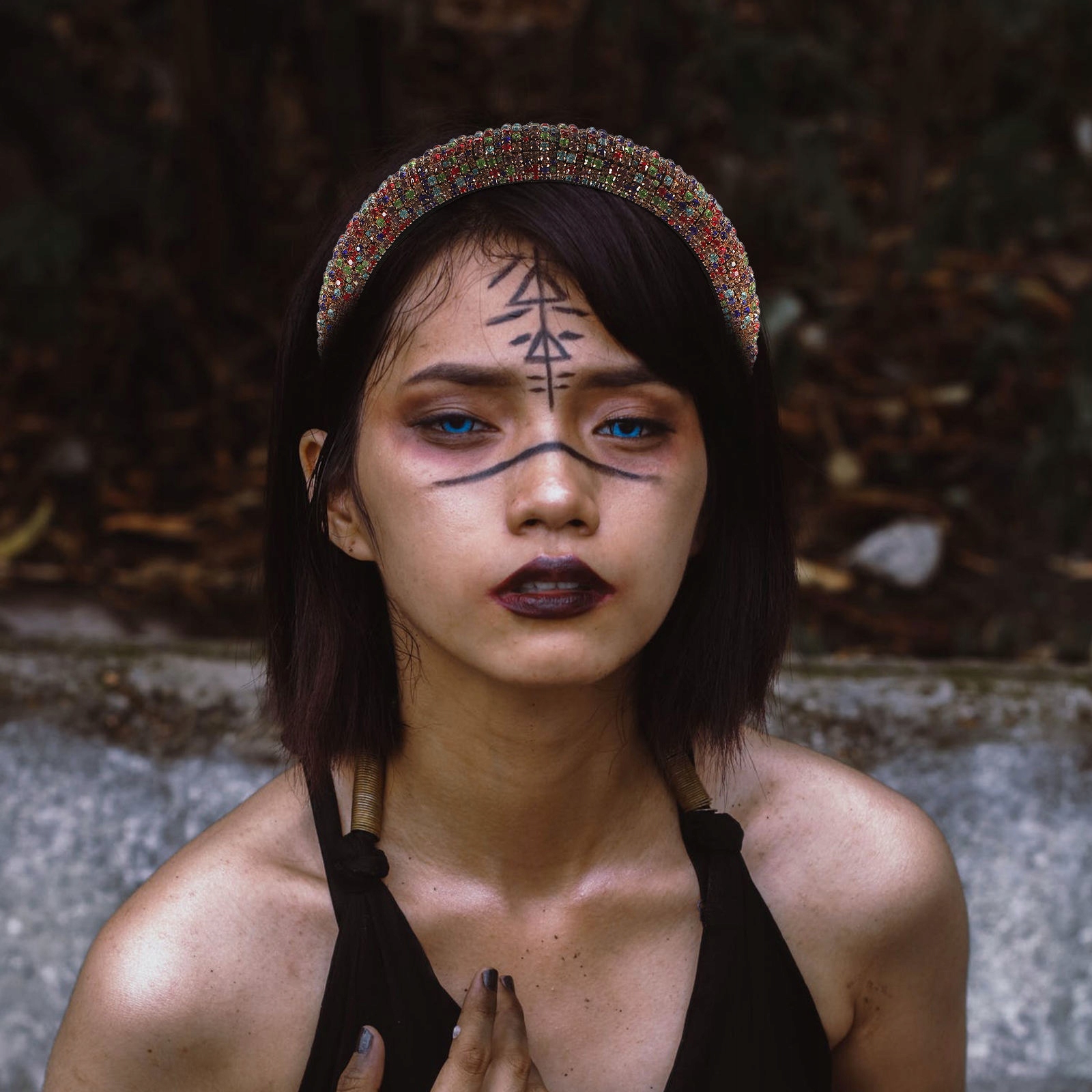 ВЕСІЛЬНА ПЕРУКА З КОЛЬОРОВИМ ДІАМАНТОВИМ ПОВ'ЯЗКОМ