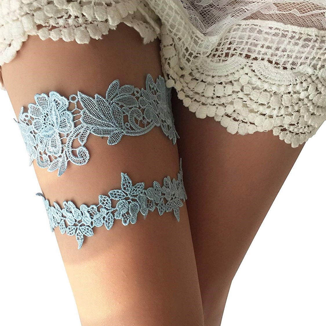 Фантастична синя мереживна весільна підв'язка. Набір - 2 підв'язки