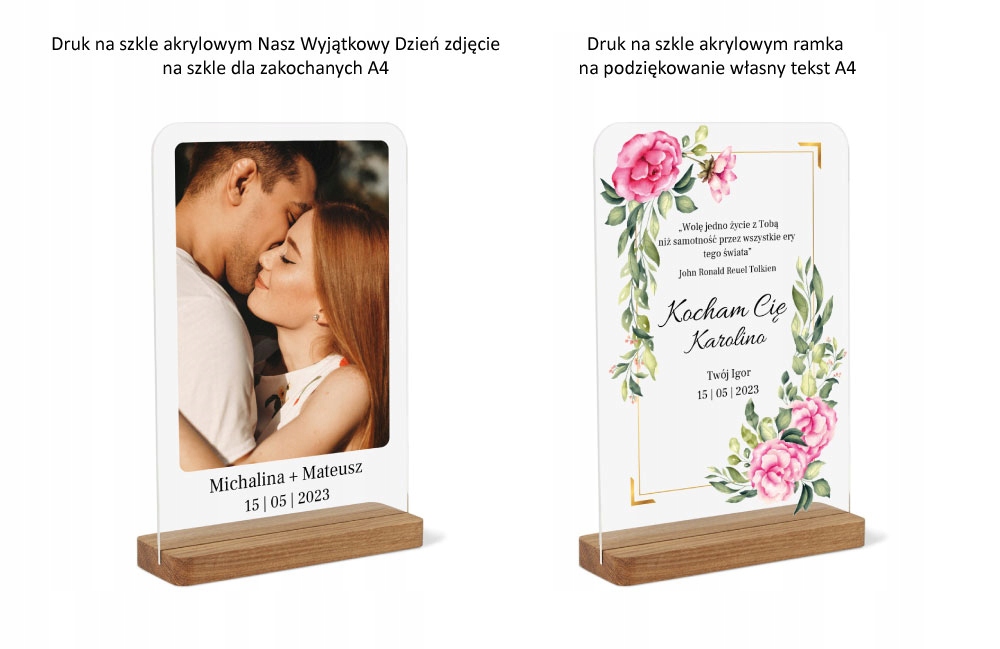 Прозоре оргскло надає природності блискі безпрецедентна глибина друкованих фотографій і ефект «зображення за склом». Завдяки такому поєднанню виріб виглядає ексклюзивно і його можна подарувати як готовий подарунок або сувенір. Продукт доступний у різних варіантах: розмір A4, A5, вертикальний, горизонтальний - різноманітні шаблони на вибір.
