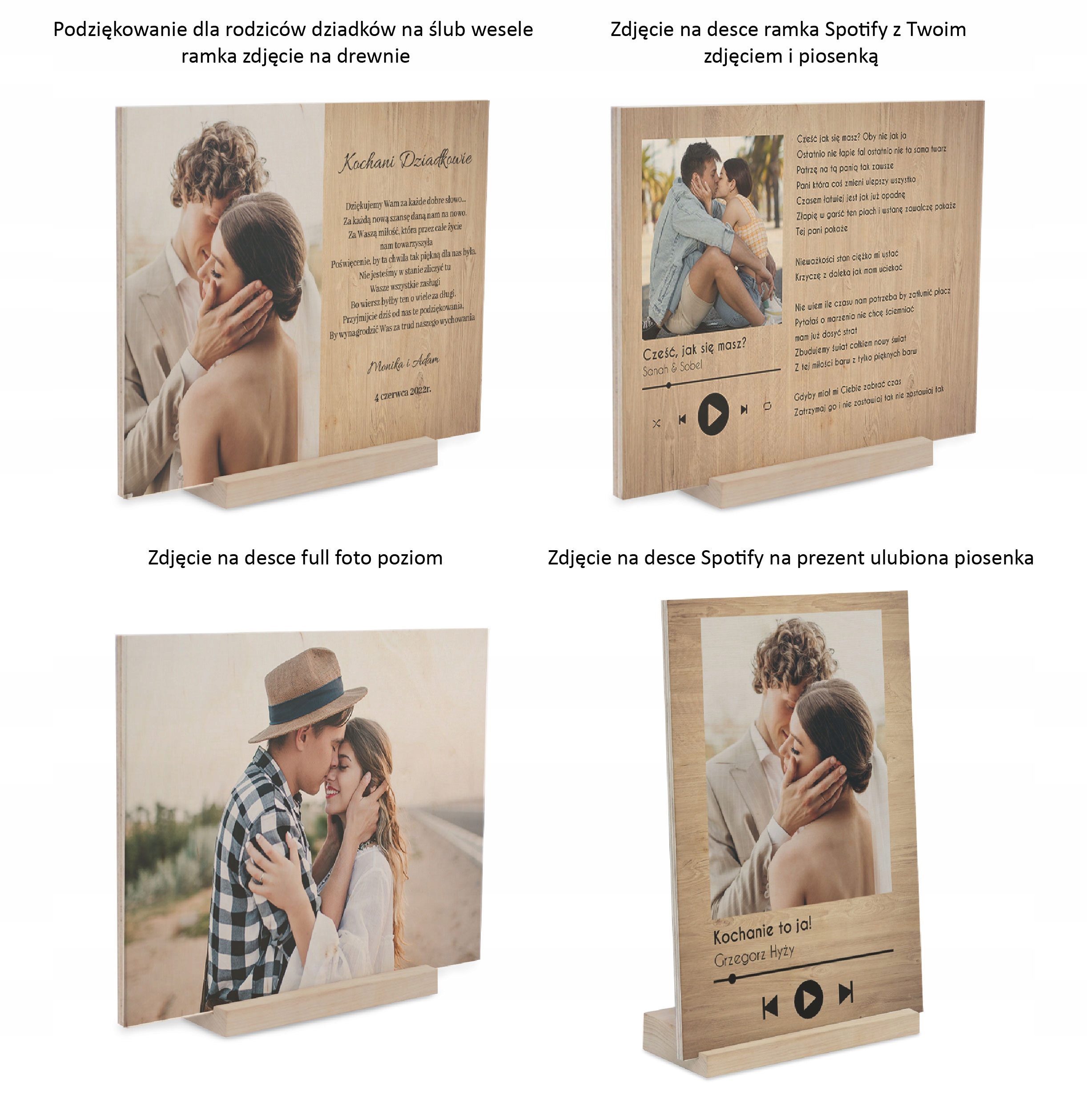 На табличці з підставкою можна розмістити власне фото та будь-який текст. колір натурального дерева. Багато шаблонів на вибір, включаючи популярну рамку Spotify.