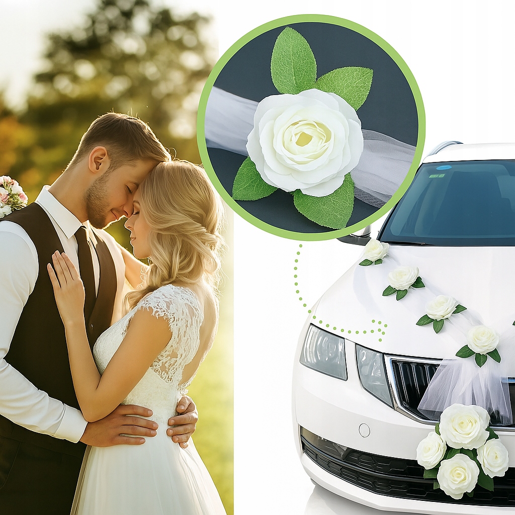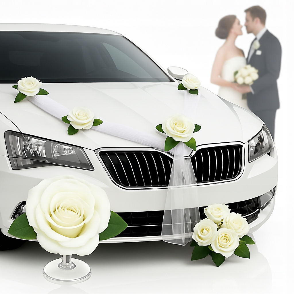 Створіть незабутню атмосферу з першого погляду - наша весільна прикраса для маски автомобіля поєднує класичну елегантність із сучасною зручністю . Ідеально підходить для кожного типу автомобіля та кожної погоди!