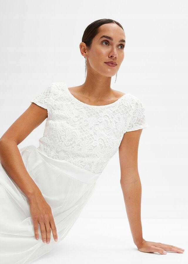 Весільна сукня 3C7C15 Bonprix з мереживом та атласною смужкою, біла 42
