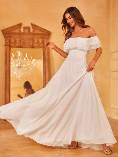 ВЕСІЛЬНА СУКНЯ А-СІЛЮТУ, ДО ПІДЛОГИ, БІЛА Рюші, L V5C