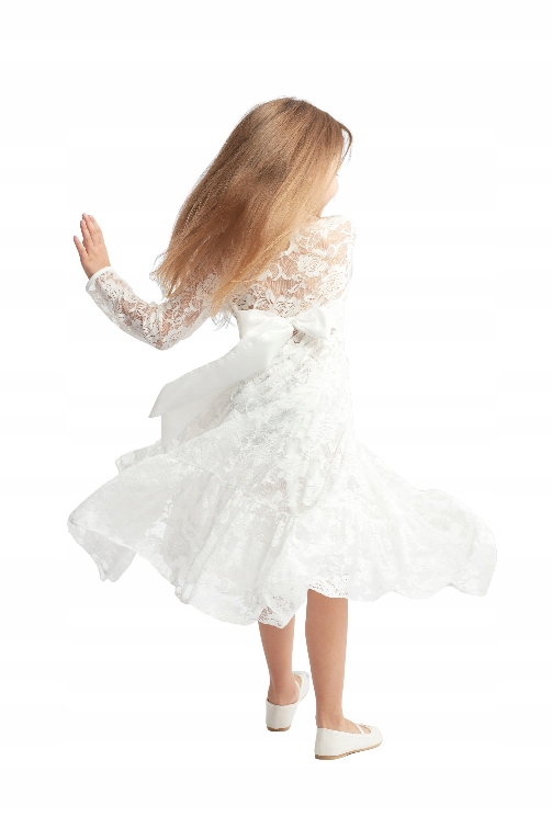 Вічна елегантна офіційна сукня Lou для дівчинки білого кольору з дуже м'якого мережива.