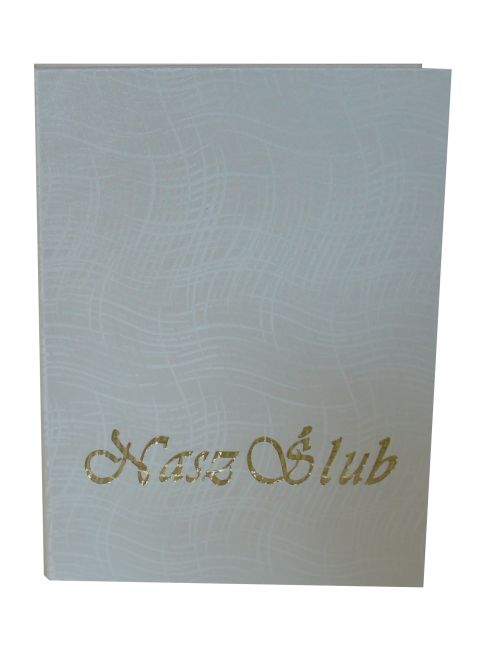 - Обкладинка золотого, білого або бордового кольору із золотим принтом «Наше весілля» li>
