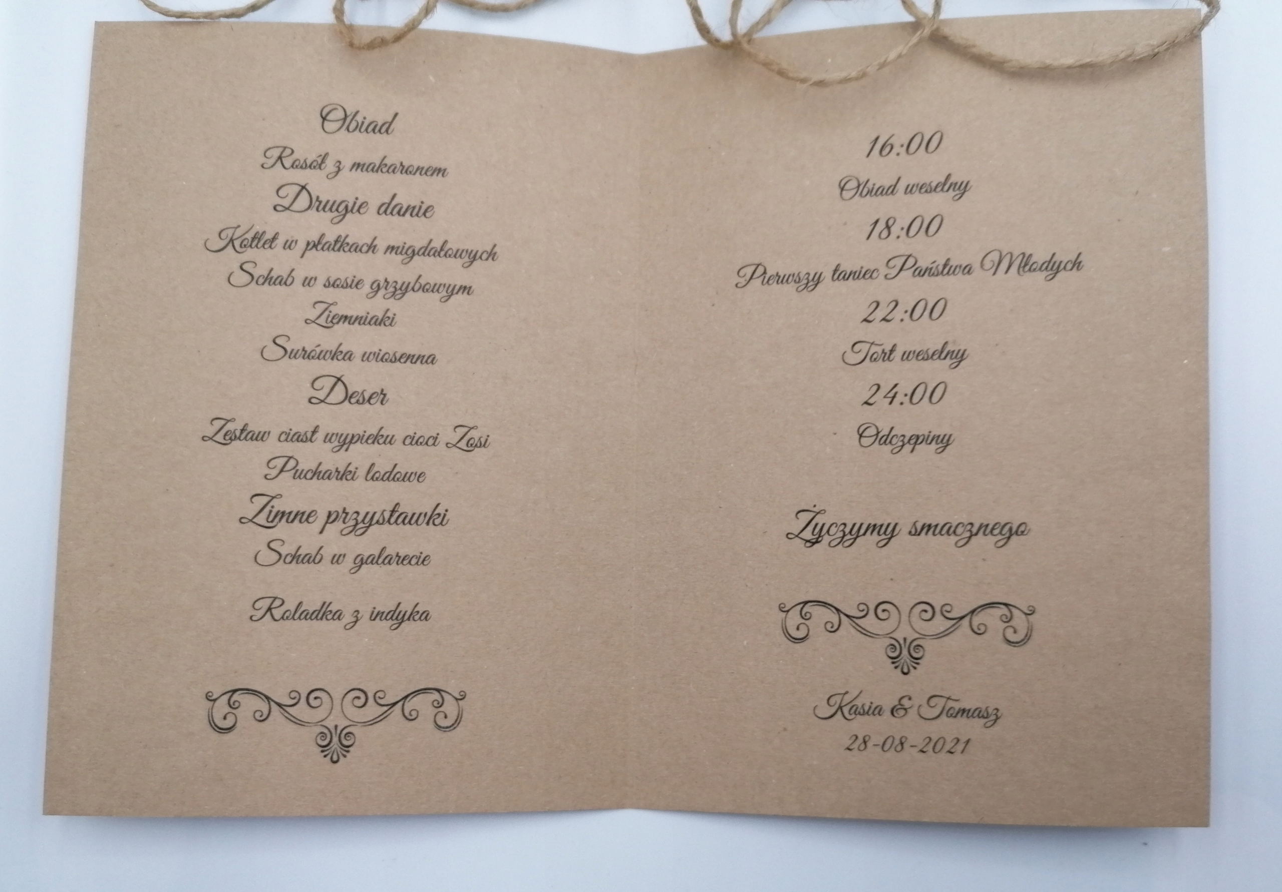 Пропонуємо вашій увазі весільне меню з еко-паперу.