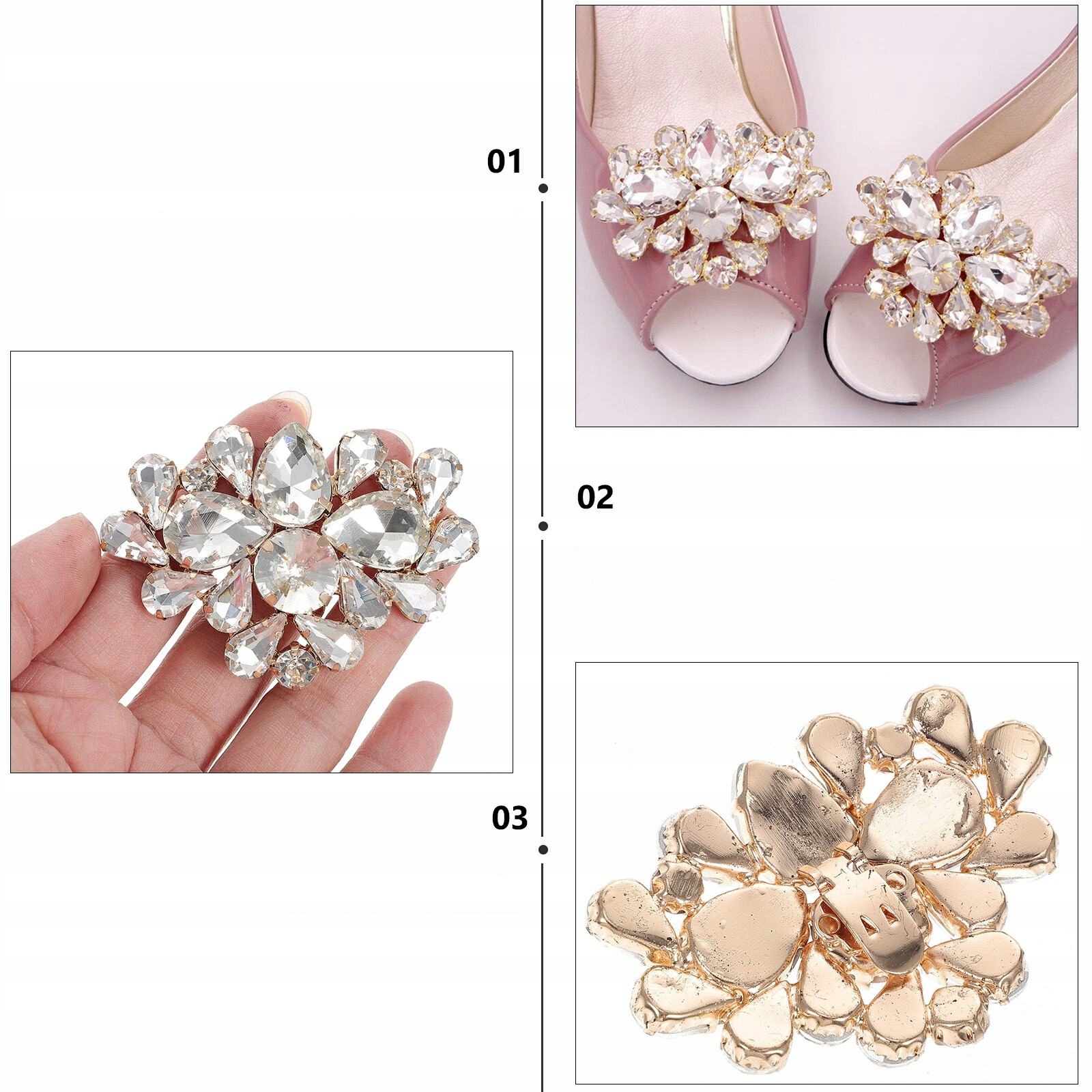 ✅Кристал має незрівнянну красу, чудово, коли ви носите цей аксесуар із гарним взуттям у звичайні дні чи особливі випадки. Ви можете використовувати їх як ідеальний декор на високих підборах, весільних туфлях або використовувати їх для кріплення шарфів, акцентів на сумочках або через петлицю вашого піджака як затискачі для брошок. Це зробить ваші речі більш блискучими та сяючими.