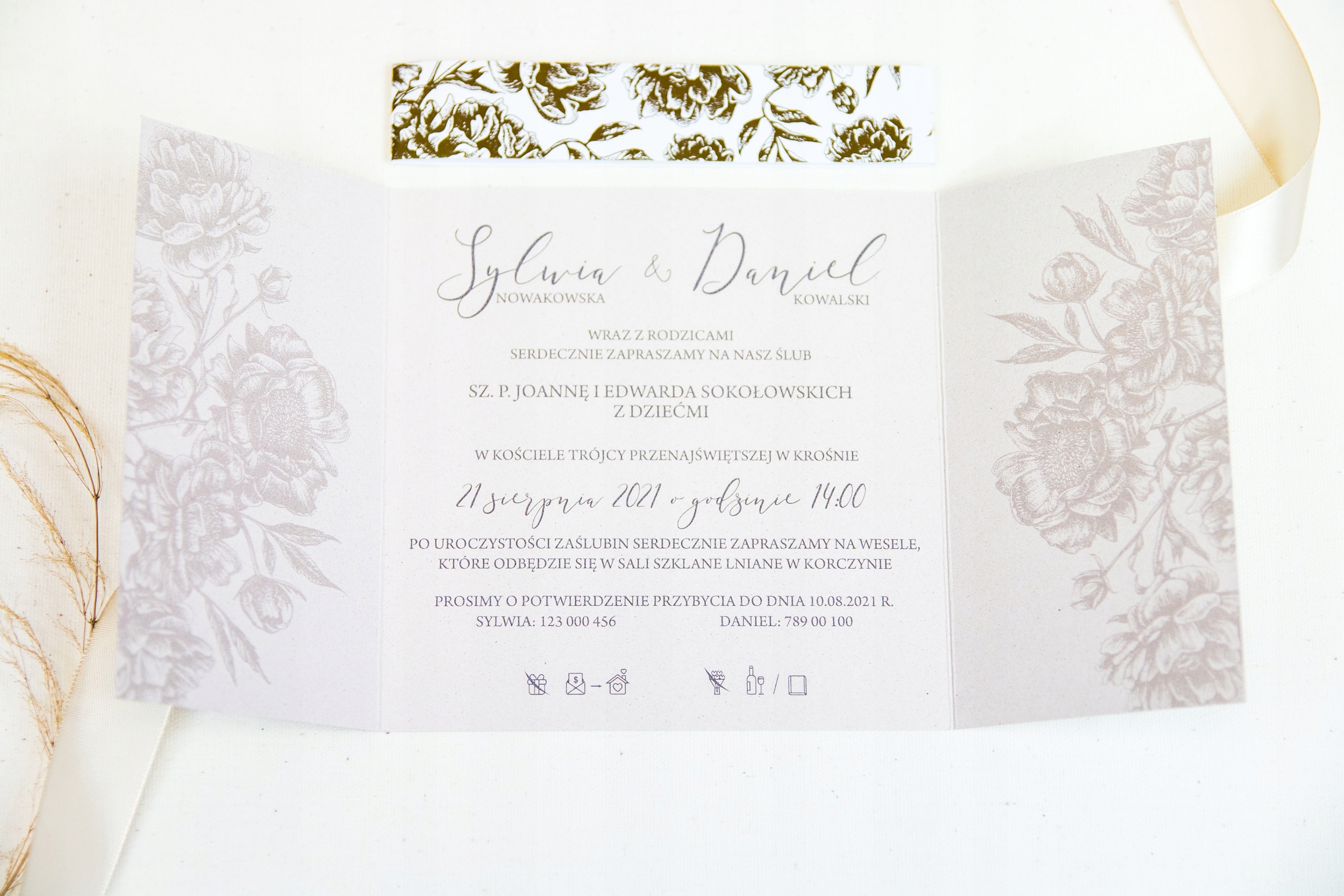- запрошення з позолоченою обгорткою, ширина 25 мм - ВИЗЕРУНОК НА ВИБІР
