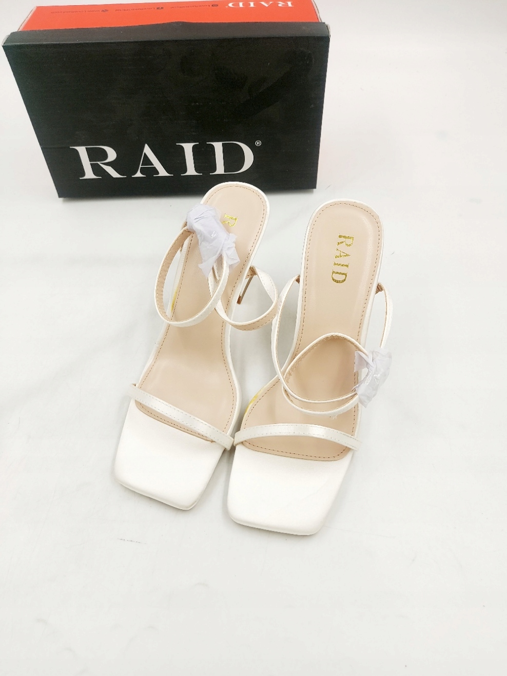 Весільні білі атласні босоніжки на підборах RAID R.38 RA25F