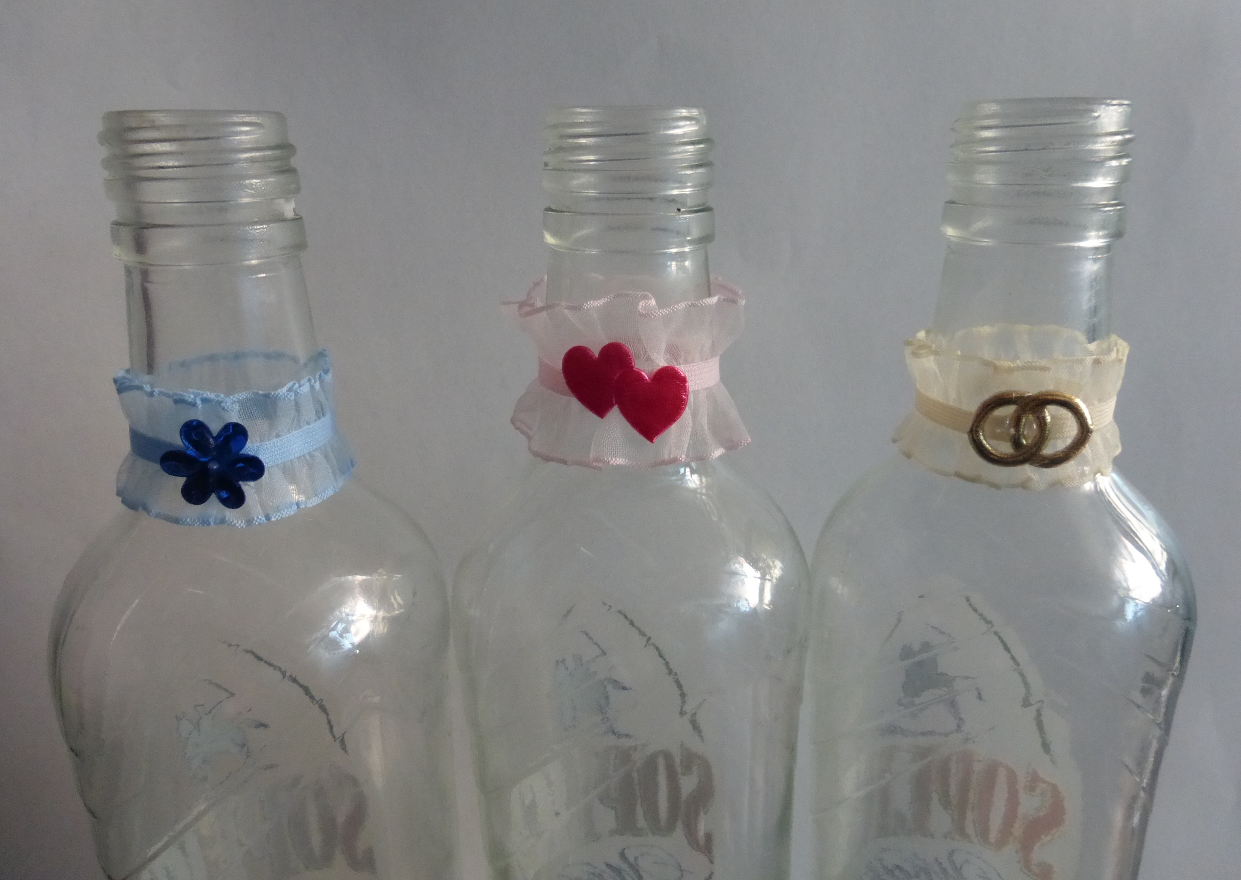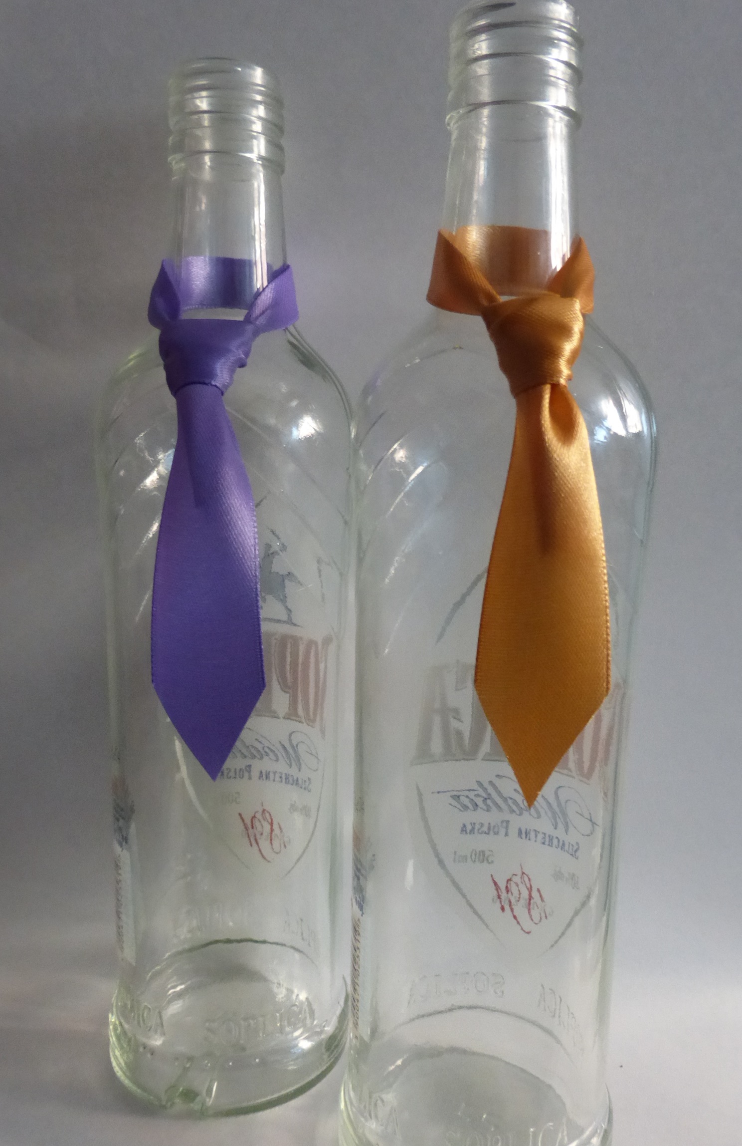 До кожної краватки-метелика пришита стрічка, що дозволяє легко зав’язати пляшку, а краватка зав’язується класичним віндзорським вузлом – просто затягніть його та покладіть на шийку пляшки .