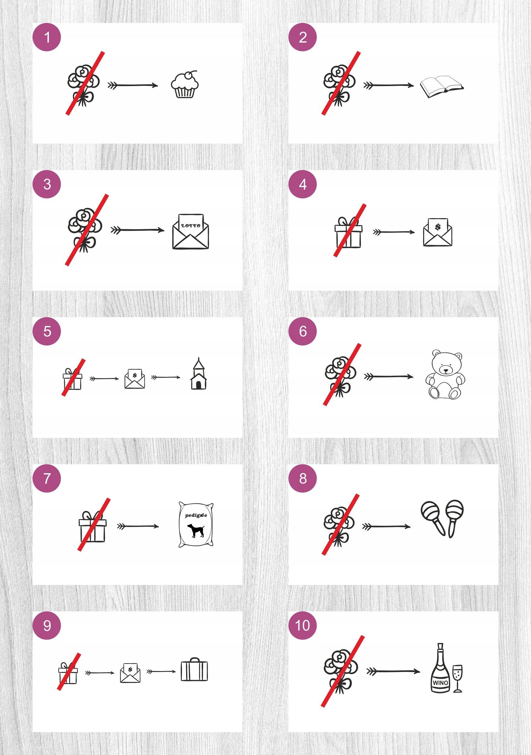 - Щоб принести нам ще більше радості, будь ласка, надішліть нам лотерейні квитки замість квітів.