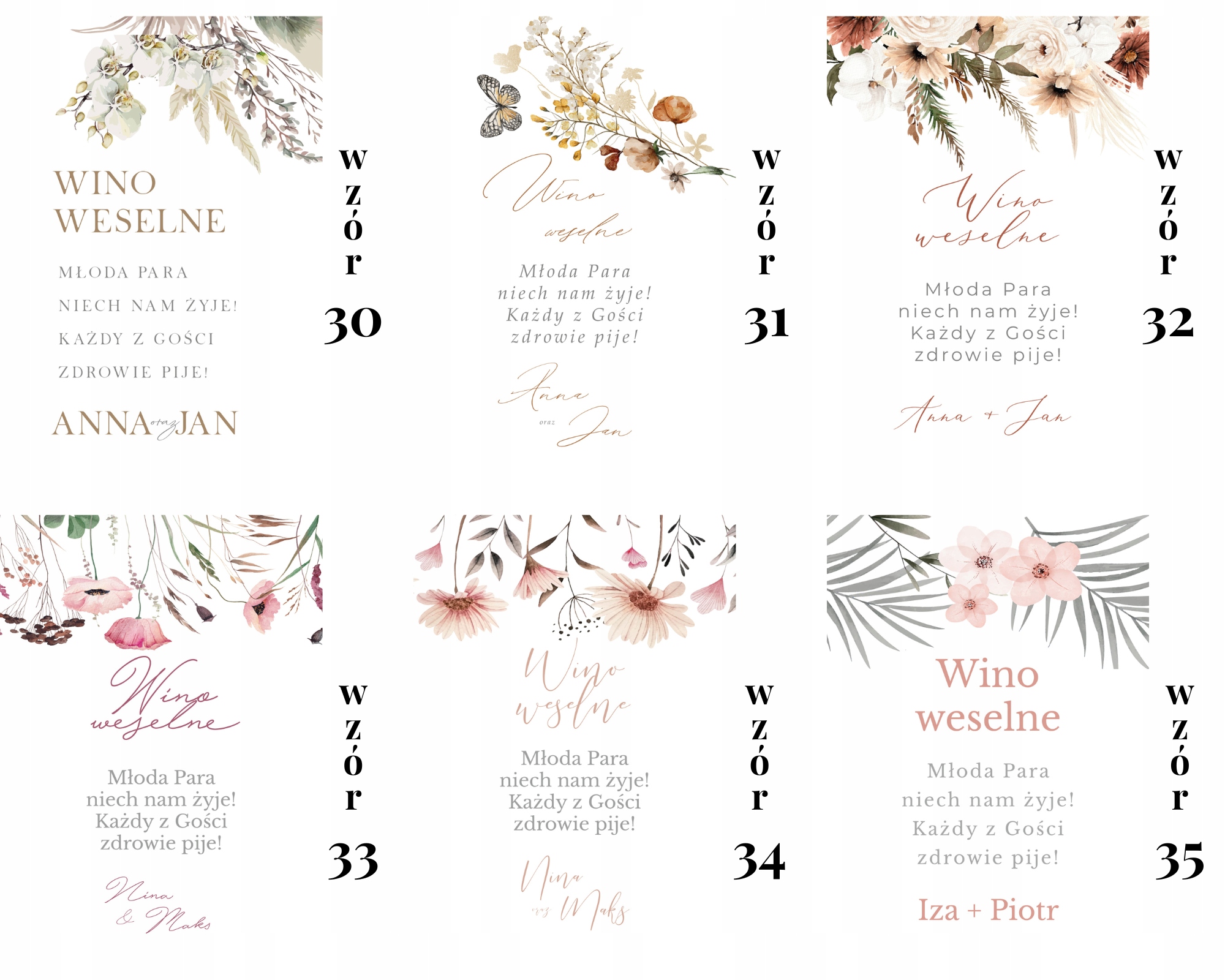 Весільні наклейки для вина BOHO СТІЙКІ ВИЗЕРУНКИ. 10 шт.