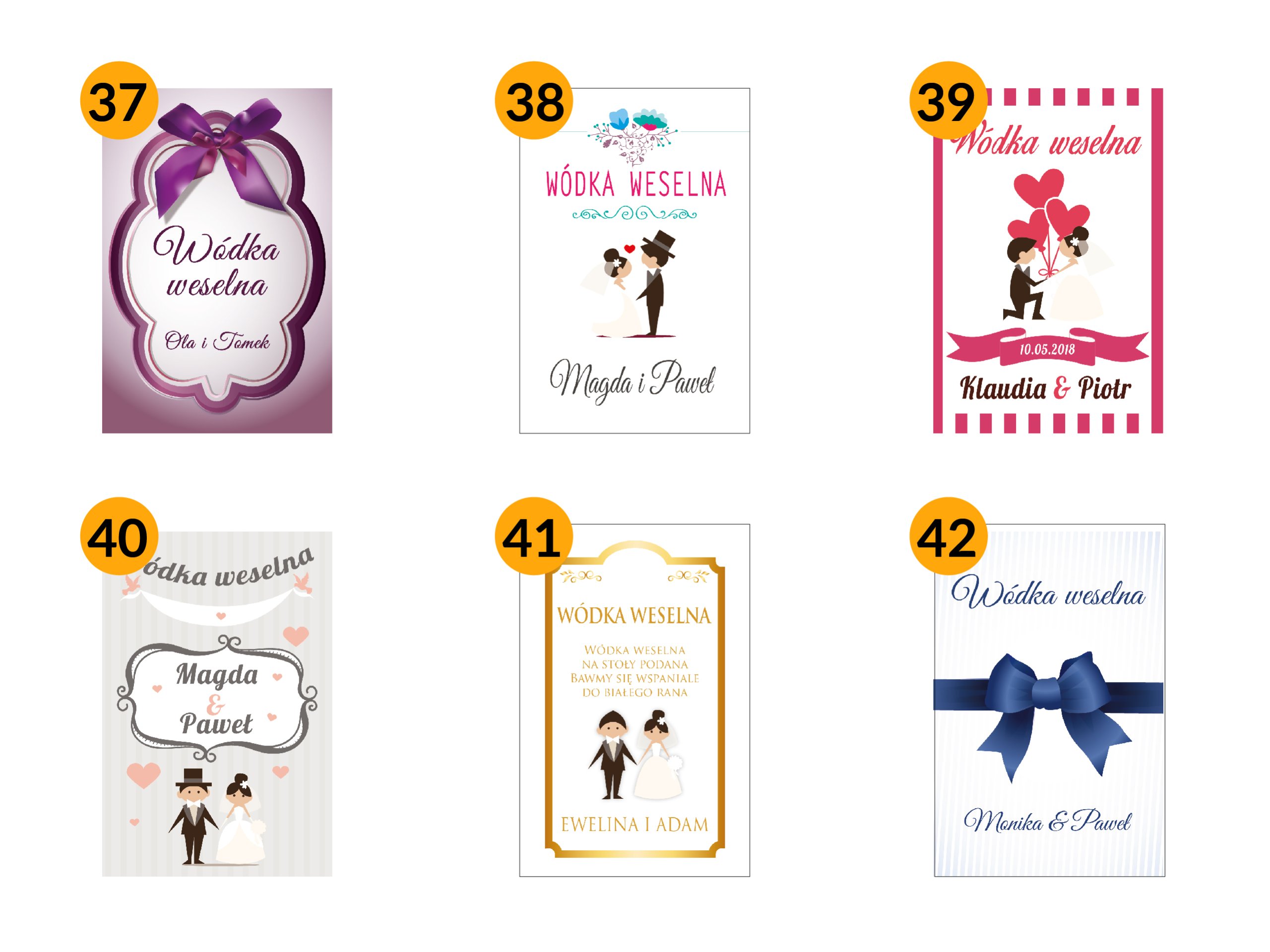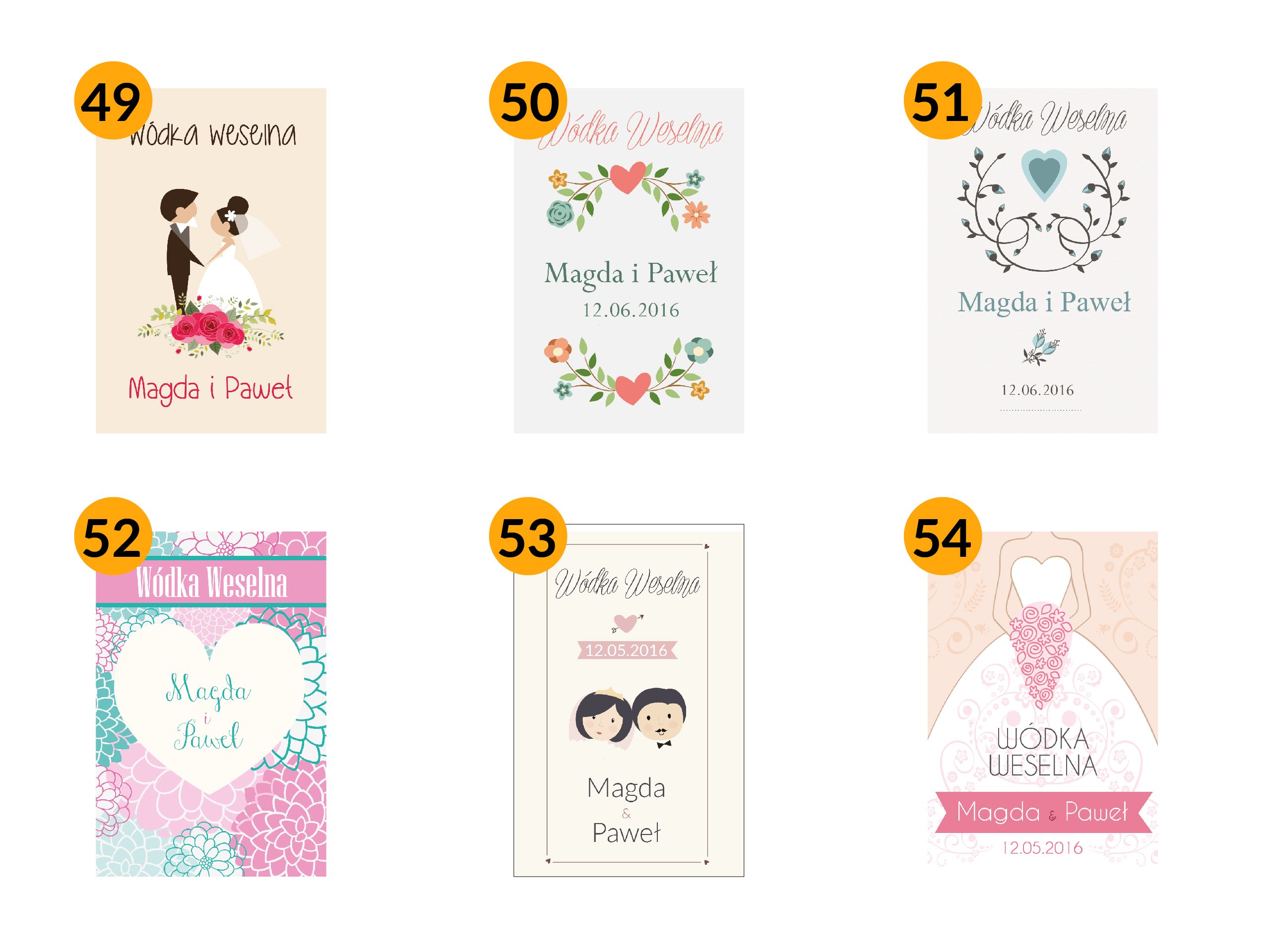 Весільні наклейки назви для пляшок горілки 57 дизайнів