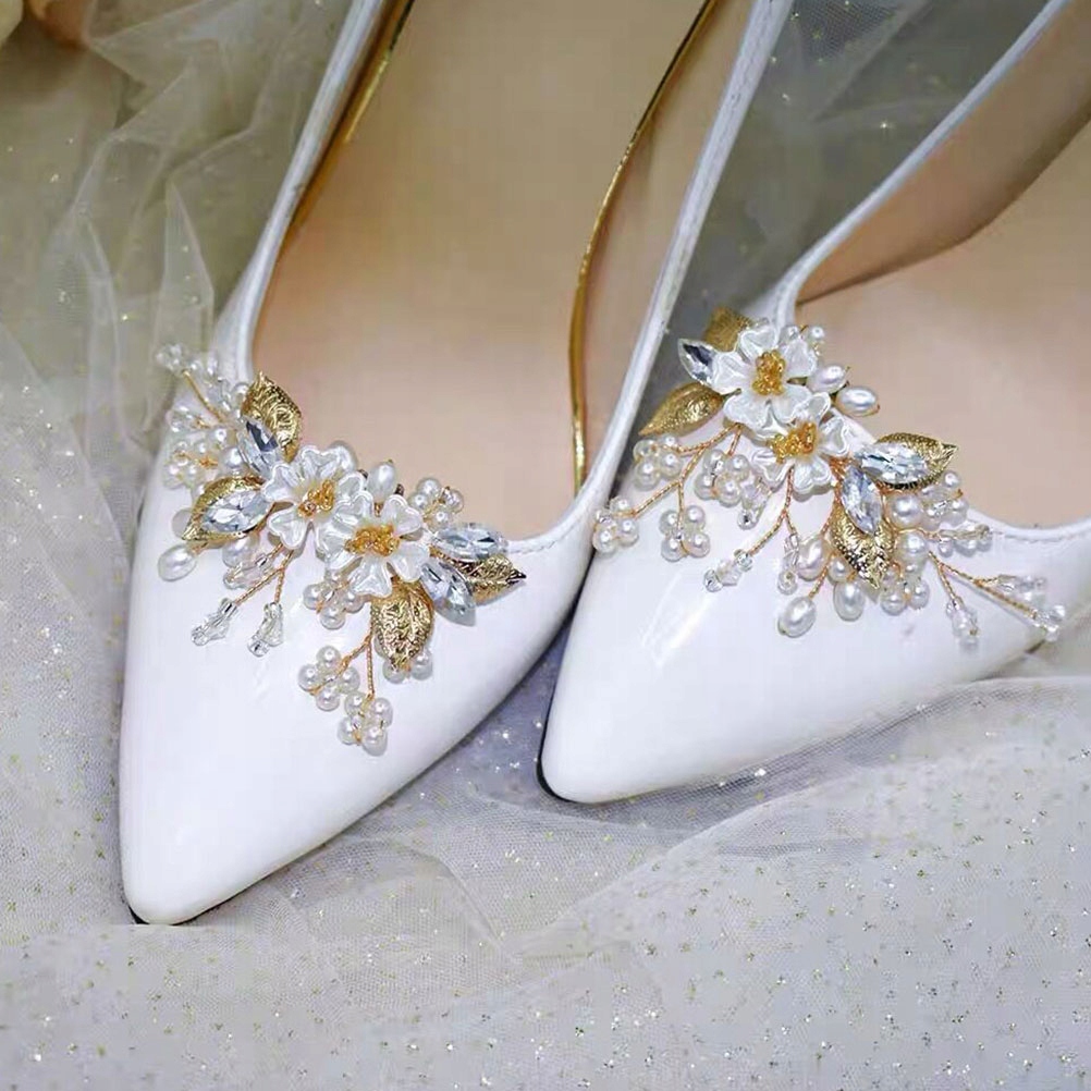 Візерунок перламутрової квітки робить весільні туфлі делікатнішими та елегантнішими, ідеальний кліп для шоу для нареченої.