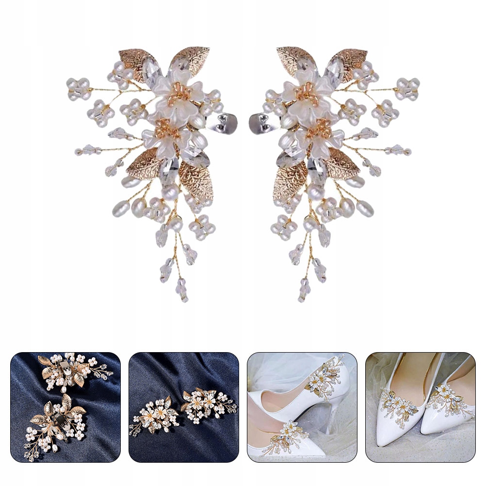 Ця пара знімних затискачів для взуття з перлинними квітами може чудово прикрасити ваші туфлі на високих підборах і весільні туфлі.