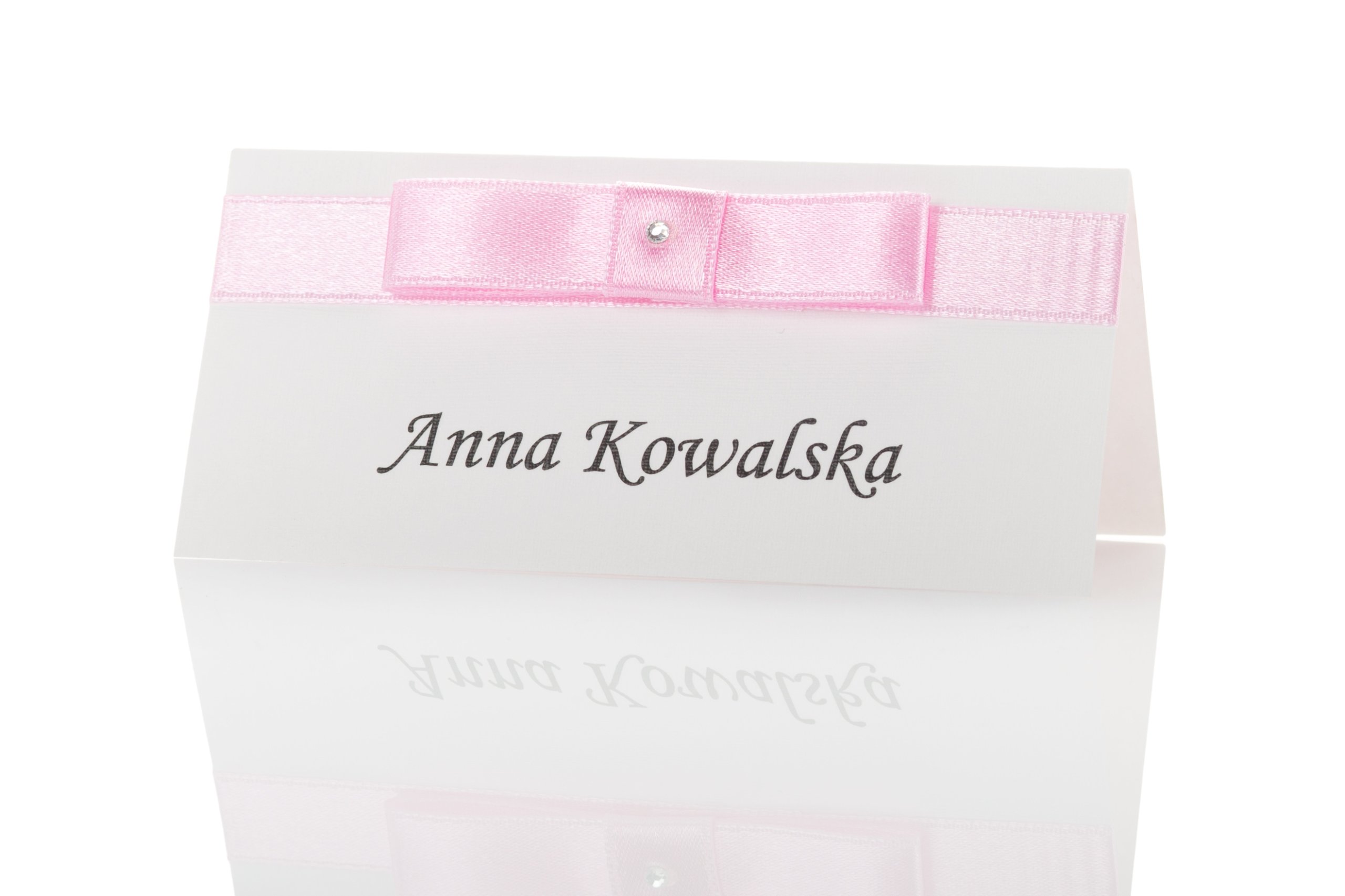 Візитки перев'язані атласною стрічкою з додатковим декоративним бантом та блискучим камінчиком.