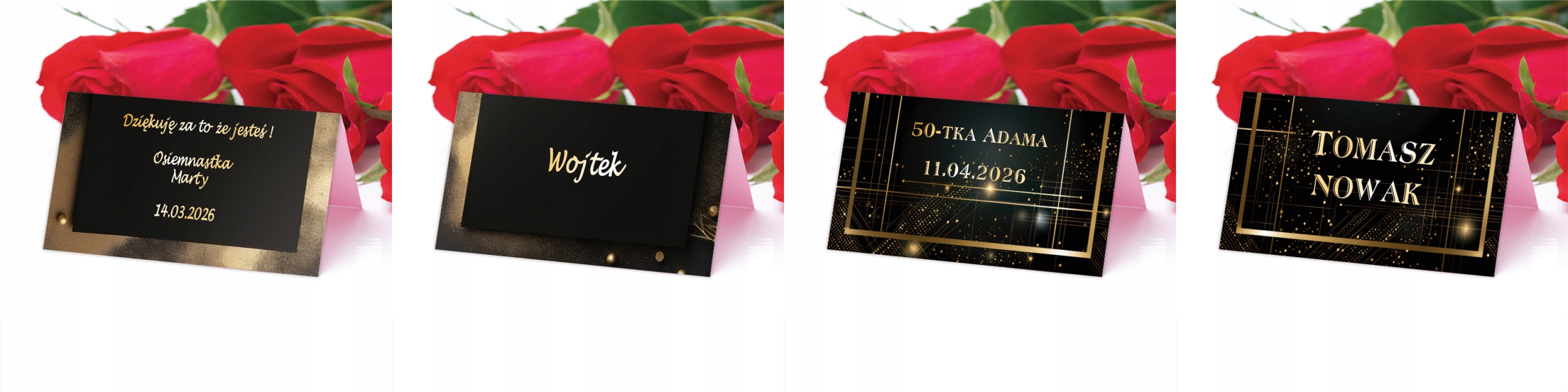 - розміщення імен нареченого та нареченої, дати весілля чи імені дитини у випадку карток для Першого Причастя чи Хрещення, а також тексту подяка на звороті листівки (якщо ви не хочете імен, дати чи вірша, не заповнюйте ці поля у формі специфікації)