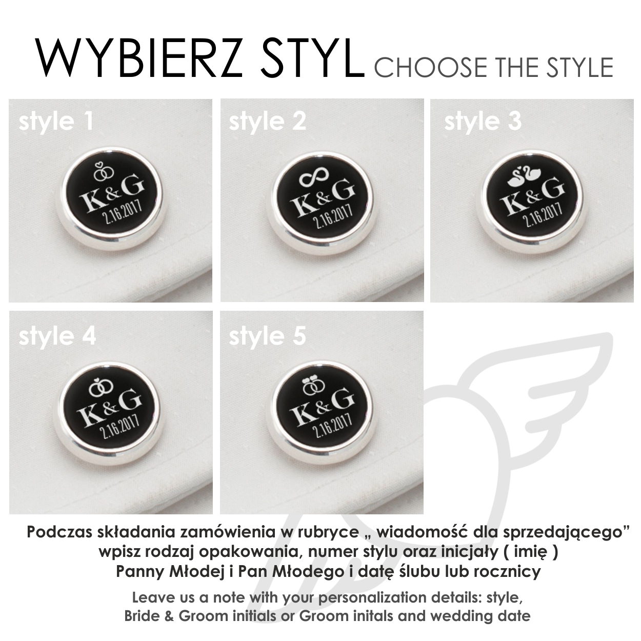 Під час оформлення замовлення в полі «повідомлення продавцю» введіть номер фасону та ініціали (ім'я) Нареченого та дату весілля чи річниці. Гравірування може відрізнятися для L і R штифтів.