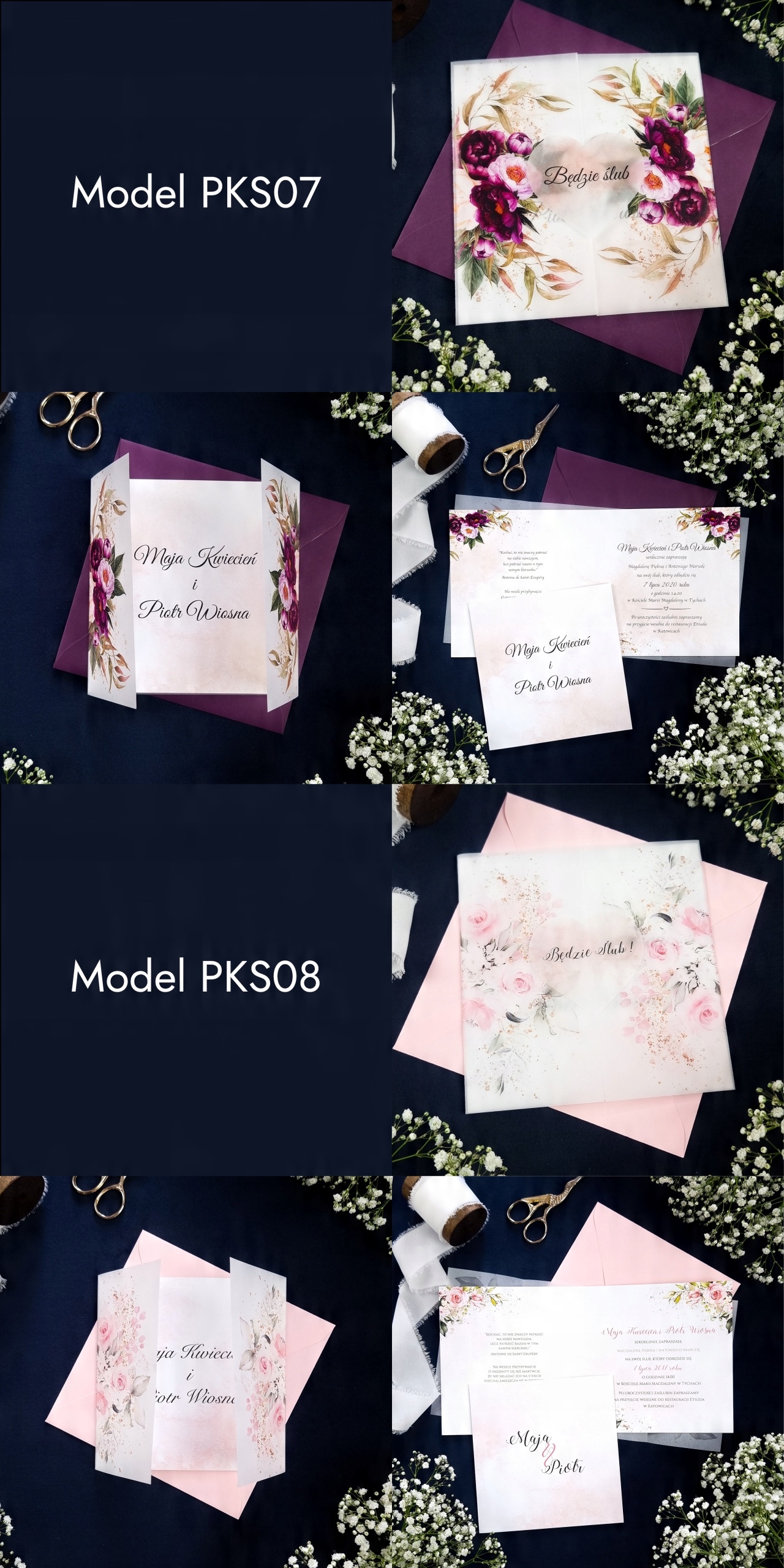 Розмір запрошення: 135 x 262 мм (у розкладеному стані) / 135 x 131 мм (у складеному вигляді)
