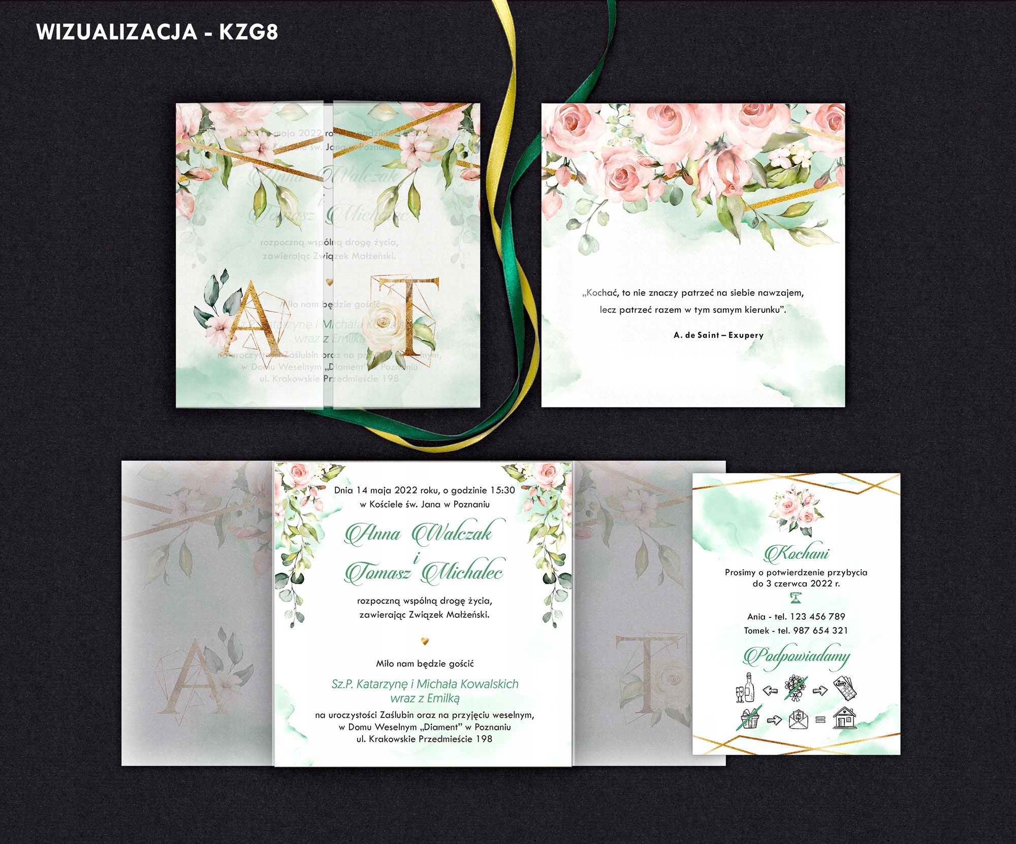 Зразки - це повноцінні запрошення за якістю виготовлення, поліграфії та типом паперу, які покликані допомогти вам визначитися з вибором дизайну. На жаль, у випадку зразків неможливо внести будь-які зміни у вміст, кольори чи вибір шрифту.
