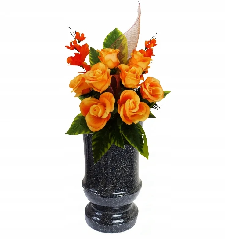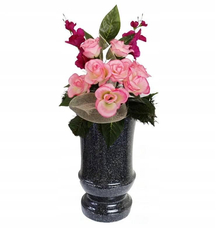 Тому ми пропонуємо Вам прекрасну надгробну композицію, яка виготовлена з штучних квітів найвищої якості. Головний убір, прикрашений штучними квітами, листям і аксесуарами, виглядає надзвичайно красиво і вишукано на надгробку у вазі