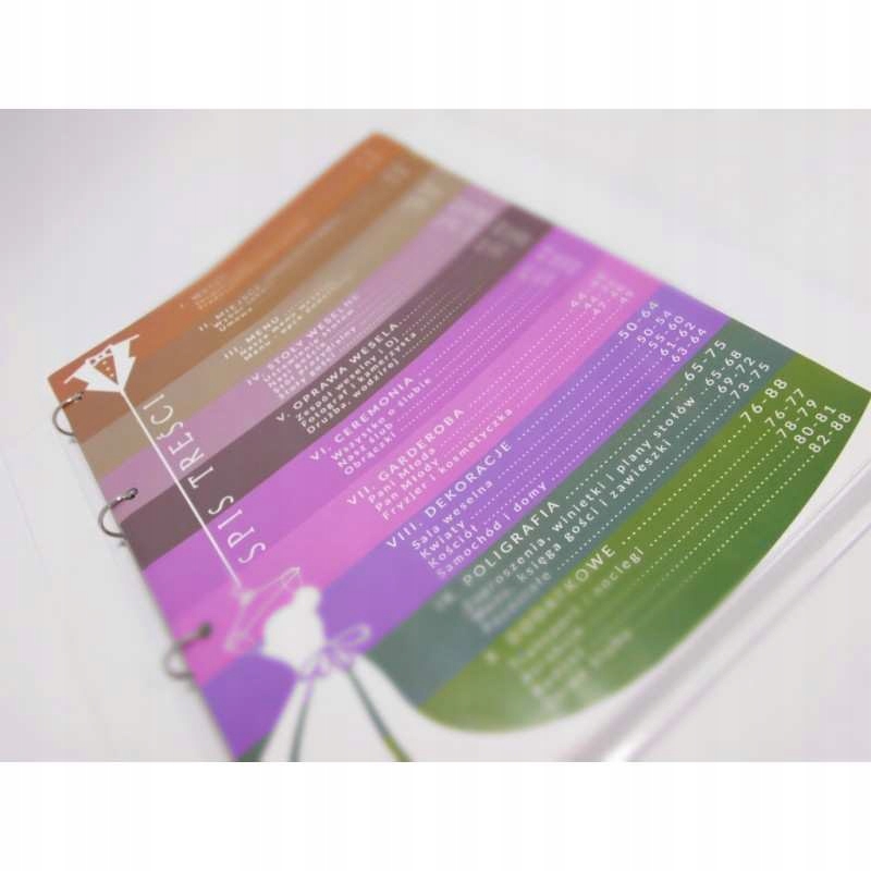 ➡️ Органайзер поділено на 10 розділів, кожен з яких позначено маркером різного кольору, що полегшує впорядкування та пошук необхідної інформації. Завдяки цьому інструменту ви можете спокійно зосередитися на справді важливому – на коханні та радості від організації весілля своєї мрії.